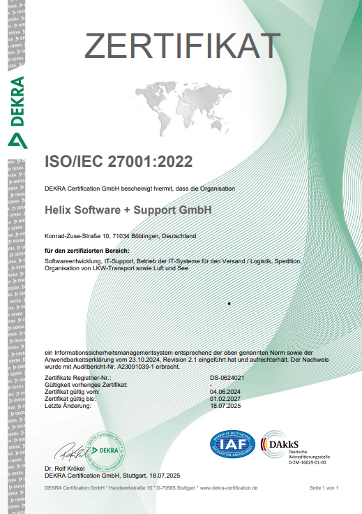 Als zertifiziertes Unternehmen nach ISO 27001:2022 stehen wir für höchste Standards in Informationssicherheit und Datenschutz. Durch ein ganzheitliches, regelmäßig geprüftes Sicherheitsmanagement schützen wir die Vertraulichkeit, Integrität und Verfügbarkeit Ihrer Daten. So können Sie sich darauf verlassen, dass Ihre Informationen bei uns jederzeit in besten Händen sind.